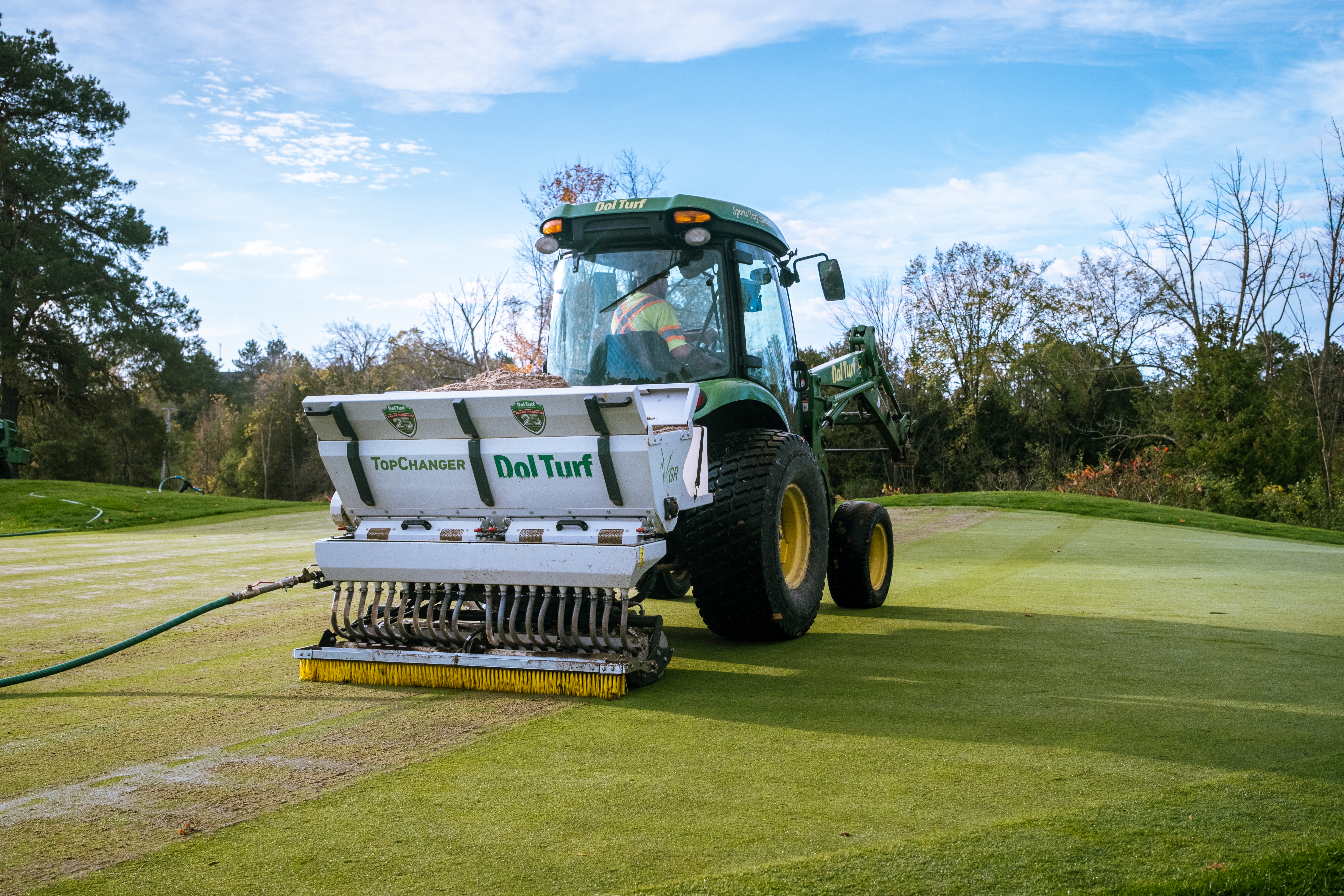 A major problem with pulling cores with traditional aeration is that it is difficult to fill the holes tightly. Once the cores are pulled, the greens are top dressed and the material is dragged into the holes, but it is not compact or firm. Over the course of a day or two following the process, rainfall, foot traffic and other factors cause the sand to settle leading to an uneven surface. With sand injection, the greens are compact, firm, fast, and ready to go the moment they are finished. While the surface may not be perfect, as it will take some time for the roots to grow into the new material, Sand injection leaves behind a much more playable putting green for players with much less hassle for the superintendent.