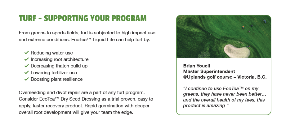 EcoTea™ Full Spectrum Biology helps build a better ecosystem the second it hits the soil. The complex web of benefits extends far beyond your plants’ roots. The ultra-wide range of species in our formula can adapt to your specific soil, planting, and conditions, as different microbes shine the way nature intended. Our standardized production process involves 3 controlled microbial sources combined in our proprietary engineered ecology extractions for consistent, stable, natural microbiology. EcoTea™ is an easy to use biological community for your plants, the way nature intended. That’s ecology applied.